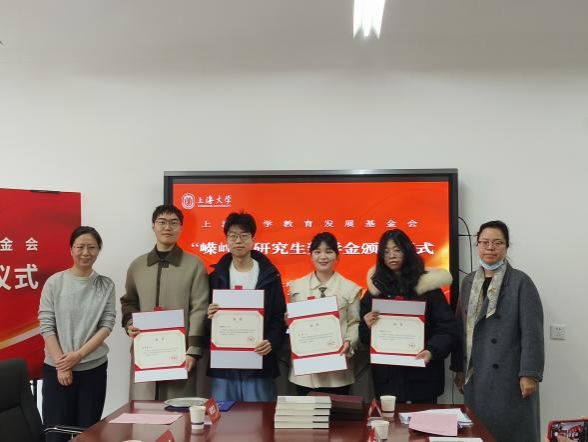 最后,公司党委书记陆甦颖进行了总结发言。她向捐赠人表示感谢,勉励获奖同学能刻苦学习,并向捐赠人颁发捐赠证书和捐赠纪念盘。捐赠人和丁佳蒙副书记共同为获得2024级“嵘㟆”奖学金的四位同学颁发奖学金证书,并向每位同学赠送《沉潜集:张荣华教授学术暨纪念文集 》,鼓励同学们在未来的学习道路上努力前行。