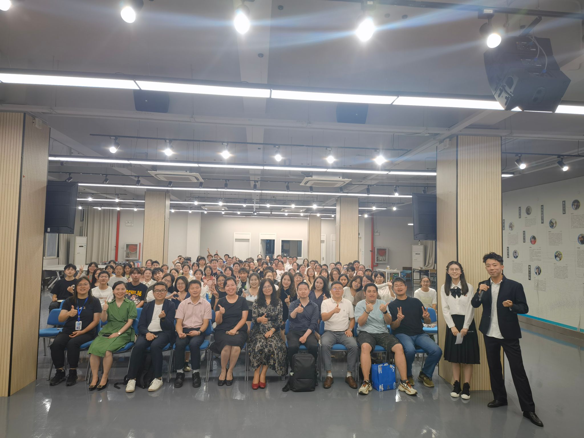 接下来,同学们带来精心准备的节目表演,有诗歌朗诵、说唱、歌曲演唱、魔术、舞蹈表演等,形式多样,内容精彩,展现了文院学子多才多艺的一面。随后是本次活动的惊喜环节,老师们为九月生日的老师和同学们送上贺卡和蛋糕,师生齐唱生日歌,一起许下对新的一岁的憧憬和期待。